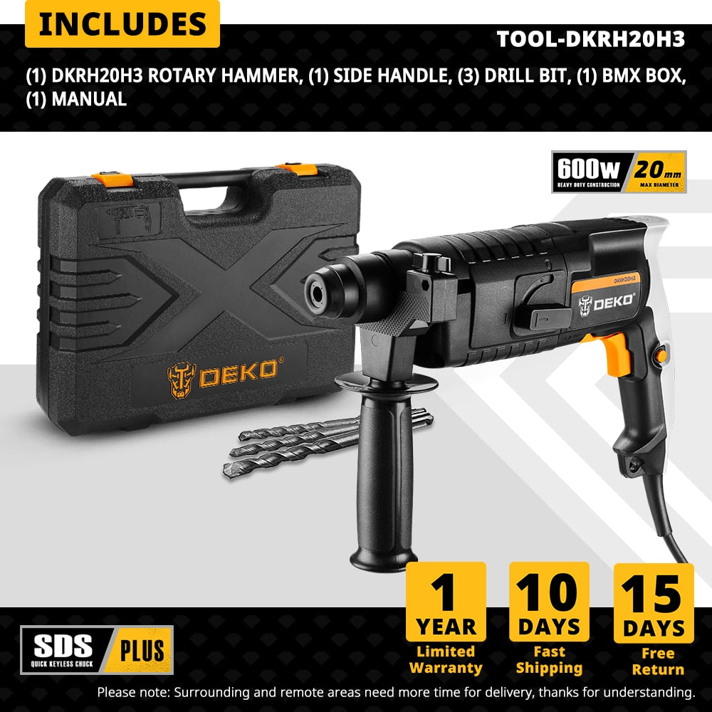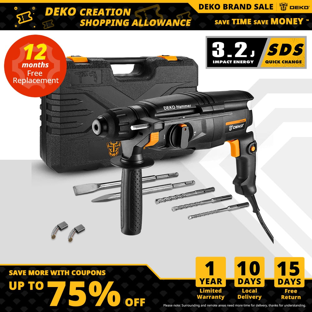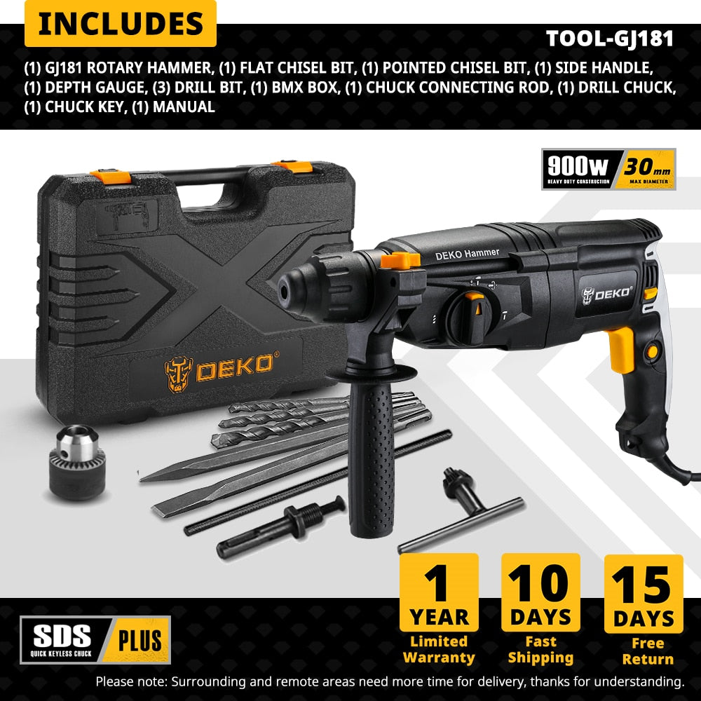 DEKO DKRH26H2 / DKRH20H3 / GJ181 Multifunktionaler Bohrhammer mit BMC & 6-teiligem Zubehör, Elektrischer Abbruchhammer Schlagbohrmaschine