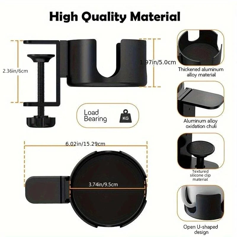 Erhalten Sie mit unserem verbesserten Getränkehalter für den Schreibtisch einen universell verstellbaren Armklemmständer für Kaffeetassen und Wasserflaschen.