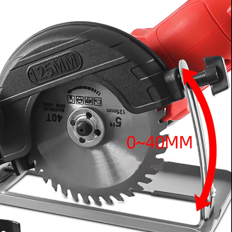 Elektrischer Kreissägenmaschine, Winkelschleifer an Schneidemaschine, 0–45° Schnitttiefe, verstellbare Holzbearbeitungswerkzeuge