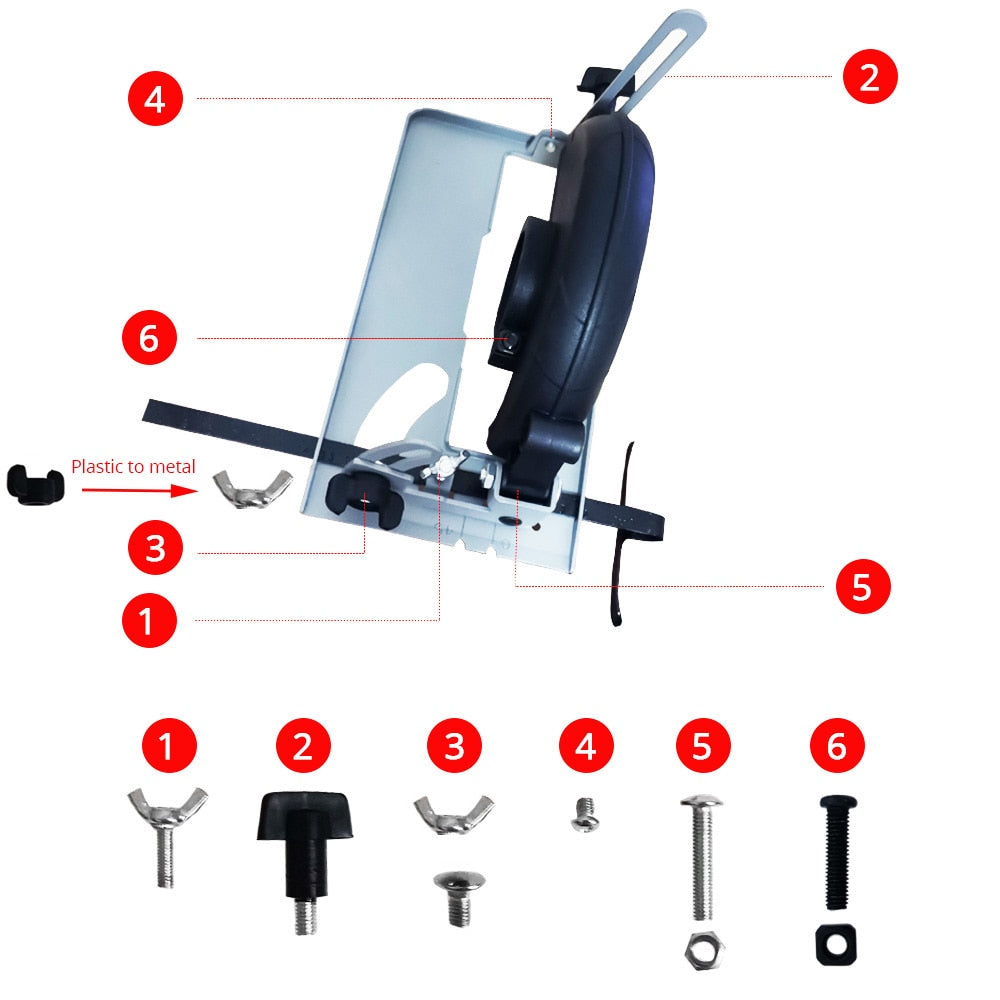 1. Diese Halterung muss mit einem Winkelschleifer verwendet werden, das Winkelschl- eifermodell ist 100-100, 125 und der maximale Durchmesser des Sägeblatts beträgt 125mm;