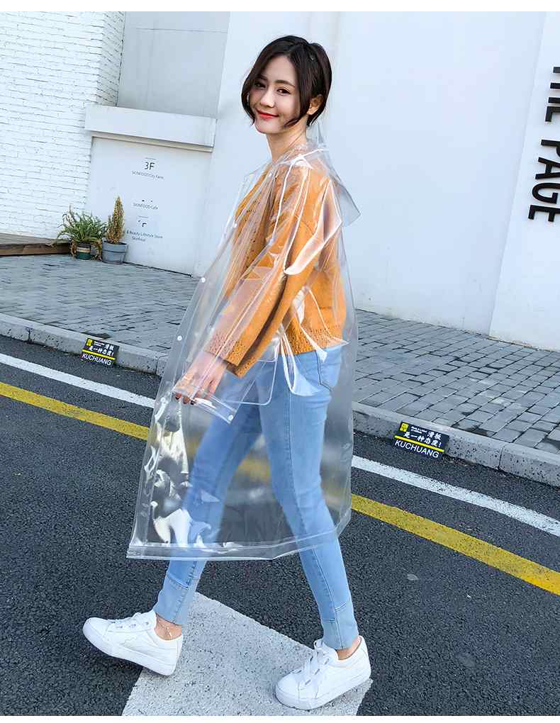 Super transparenter Regenmantel für Damenmode, Wasserdichter Umweltschutz-Regenmantel, wiederverwendbar mit Kapuze und Kordelzug