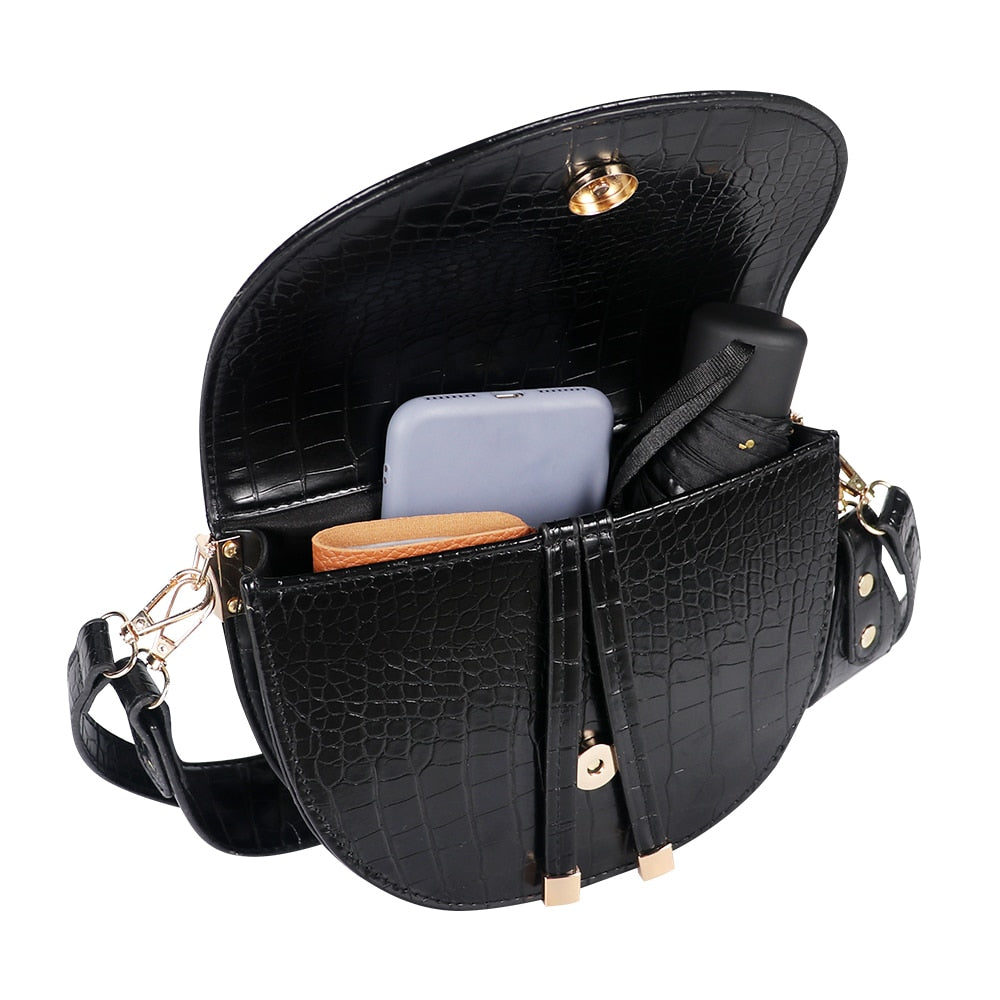 Diese zierliche Damen Umhängetasche aus Krokodil Muster ist ein Must-Have Accessoire. Unübertroffen in Bezug auf Qualität und Design, bietet sie ein Klassiker, den man einfach lieben muss. Dieses stilvolle, halbrunde Design ist sowohl einzigartig als auch funktional und bietet Platz für Ihre wichtigsten Gegenstände.