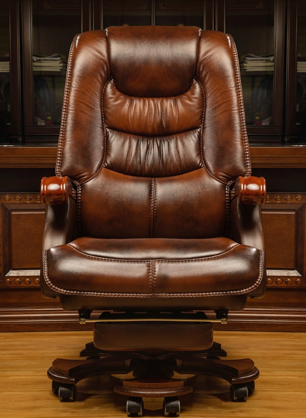 Leder-Chefstuhl, Business-Massage-Chefsessel, Massivholz-Bürostuhl, Liege-Lift-Drehstuhl, Heimcomputer-Stuhl