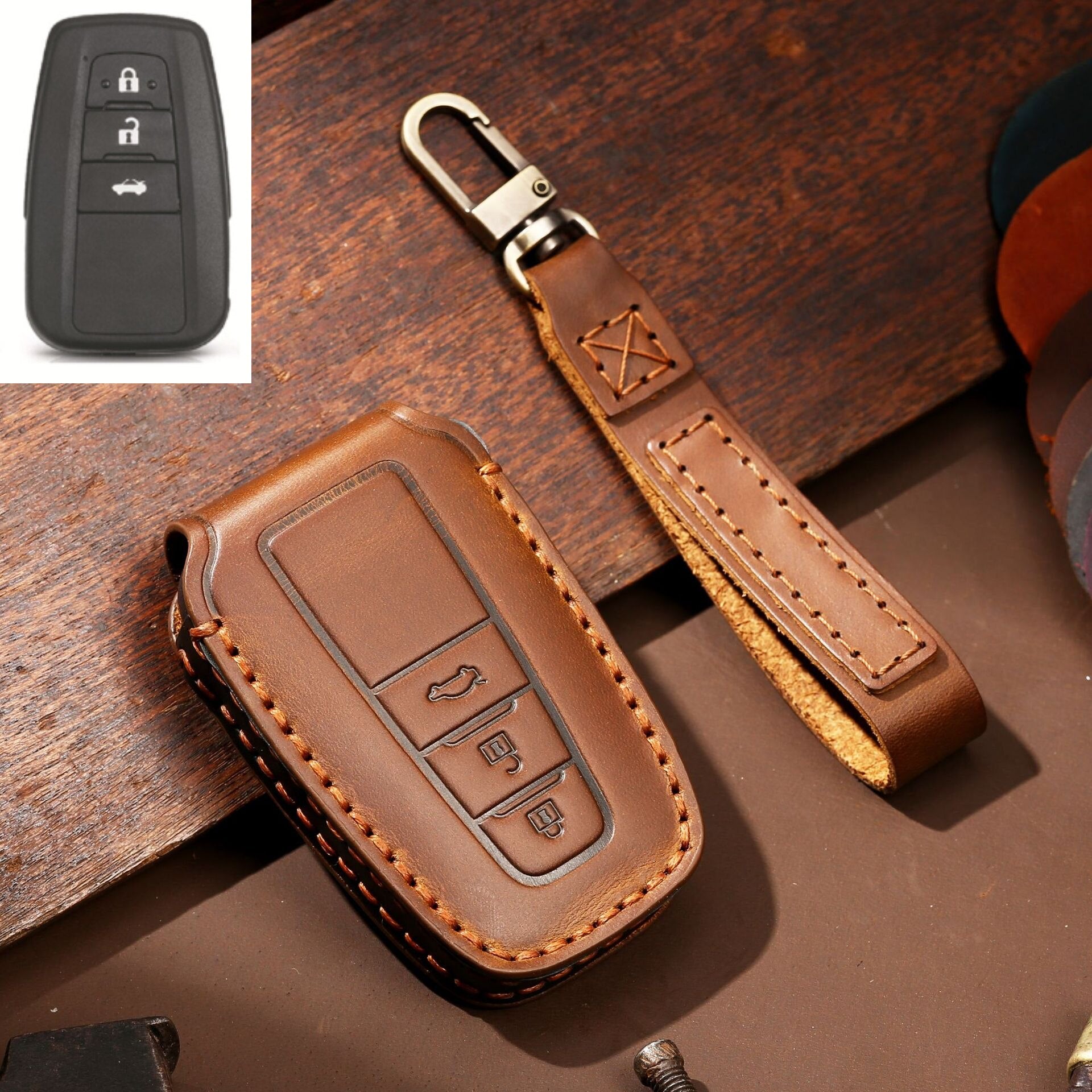 Unser Leder-Fernbedienungs-Schlüsseletui ist eine modische Wahl für Ihren Toyota Camry, CHR, Corolla, RAV4, Avalon, Land Cruiser, Prado und Prius 2017 - 2022.