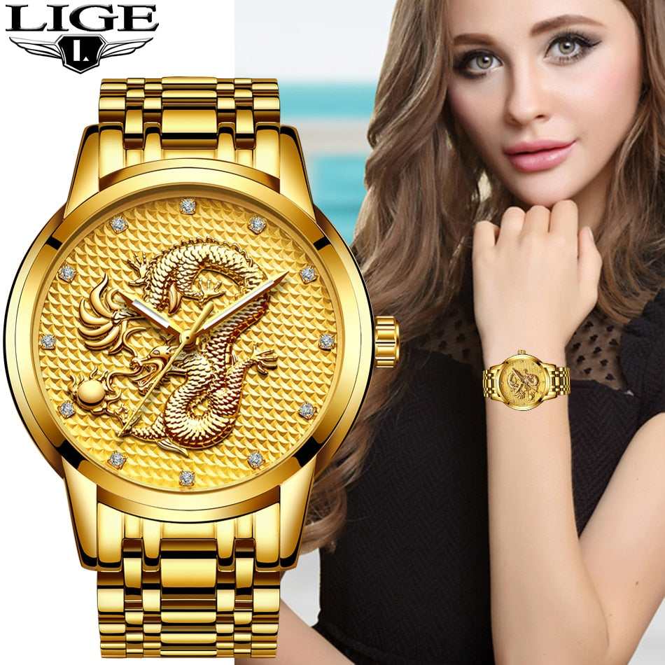 LIGE Women Watches Women Fashion Watch 2022 Classic Ladies Watch Luxury Brand Diamond Quartz Gold Wrist Watch Gift For Women+Box
