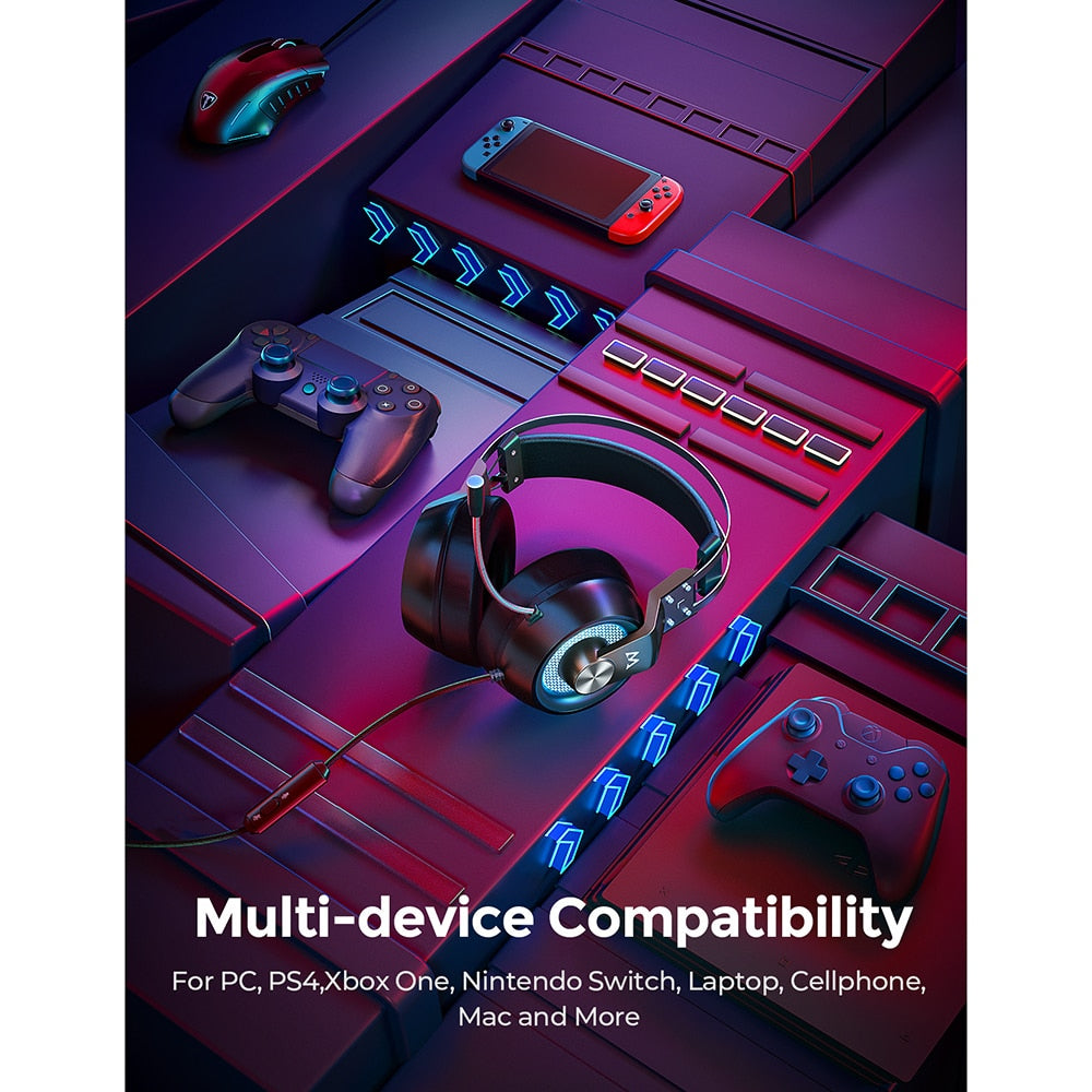 Mpow EG3 Pro Gaming-Kopfhörer für iPad PS4 PC Laptop Tablet-Telefone 3,5 mm Jax & amp; USB-Kabel unterstützt Lautstärke-/Mikrofonsteuerung 50-mm-Treiber