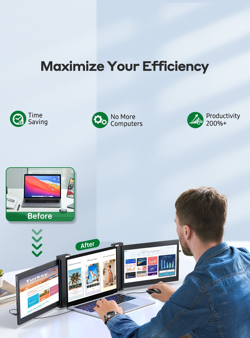 - TEAMGEE VISUAL REVOLUTION - 2022 Teamgee neu entwickelter Bildschirm-Extender, die beste Lösung für Ihren Multitasking- und mobilen Arbeitsplatz. Das flexible Drei-Bildschirm-Display bringt eine enorme Steigerung Ihrer Produktivität, beflügelt die Kreativität und gibt Ihrem Gehirn eine andere Art von Denkanregung.