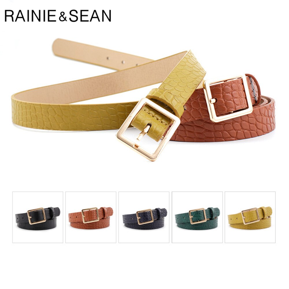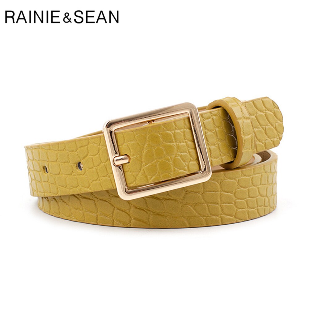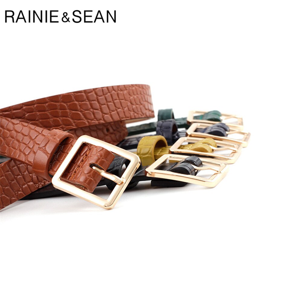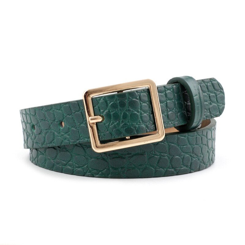 Modischer Damengürtel mit Krokoprägung, Taillengürtel, Grün, Gelb, Schwarz, Kamel, Damengürtel