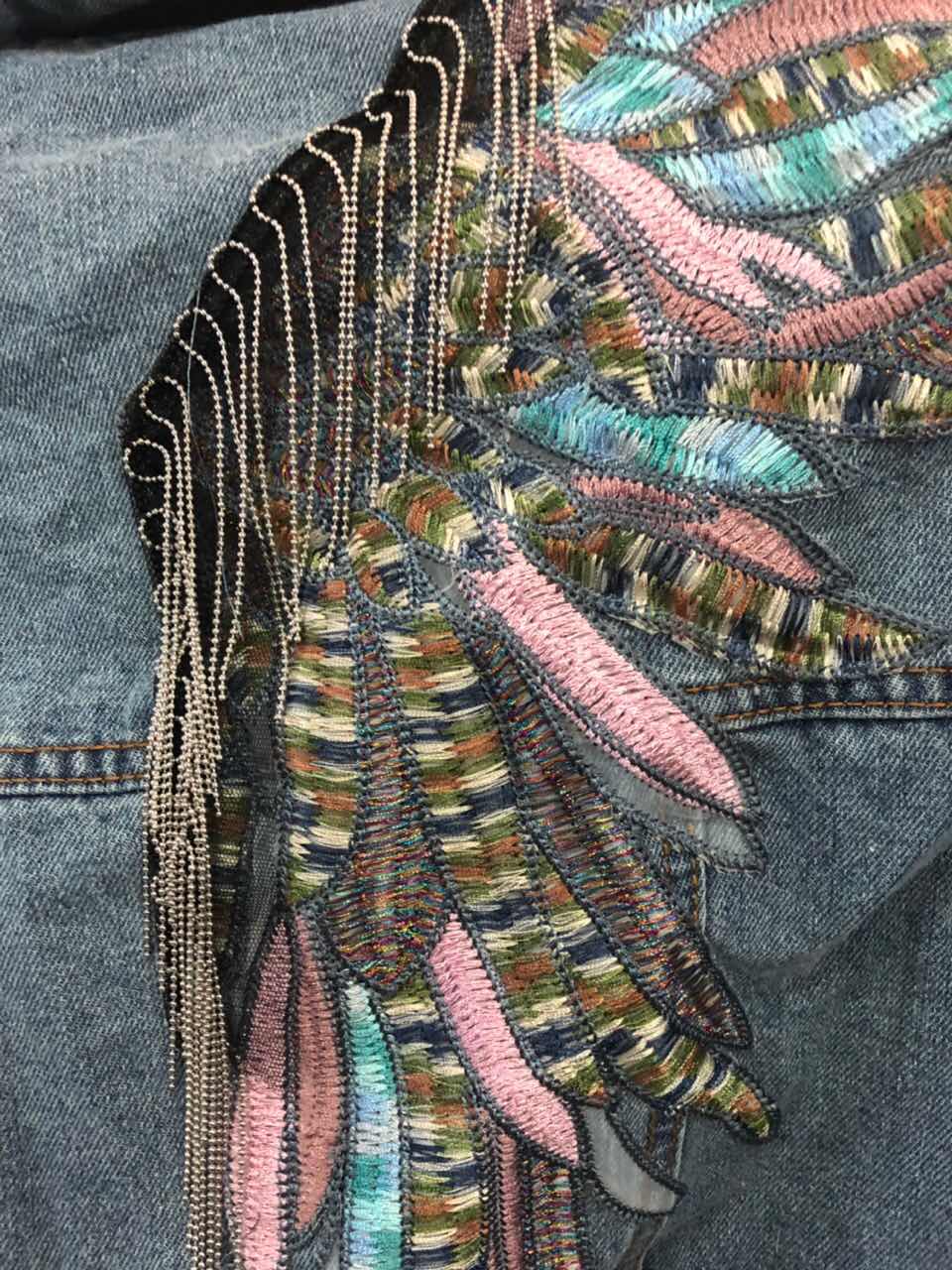 Rivet Wings Bestickte Damen Jeansjacke mit Metallquasten und Nieten