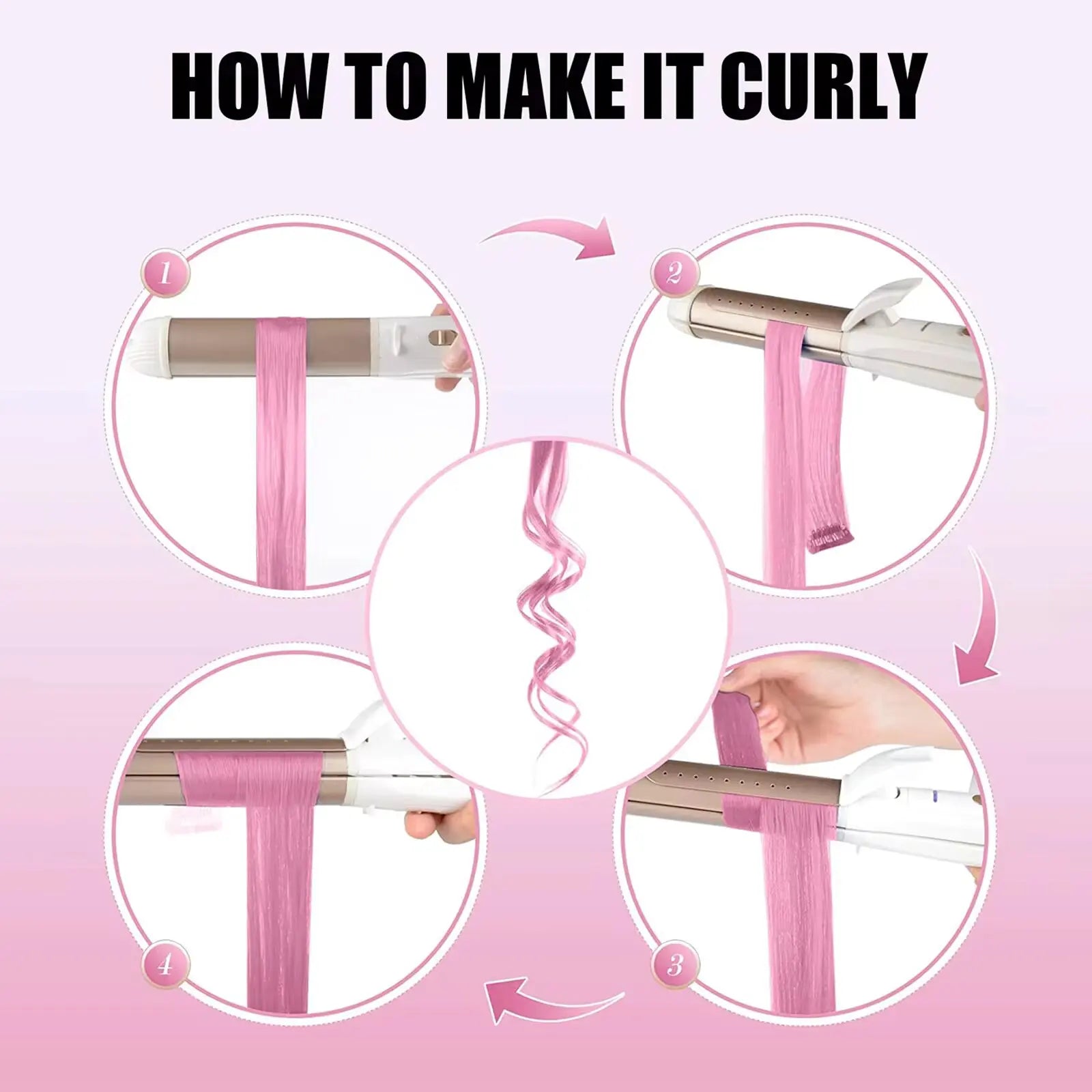 Synthetic 5Pcs Colored Hair Extensions Clip in Colorful Hair Extensions Rainbow Hair Extensions for Women Girls Hair Extensions