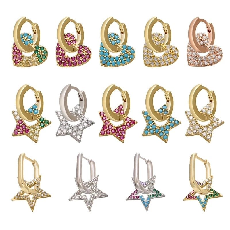 1 stück CZ kristall kleine creolen Exquisite Gold Farbe Stern-Herz, nette Damen Ohrringe für Geschenke