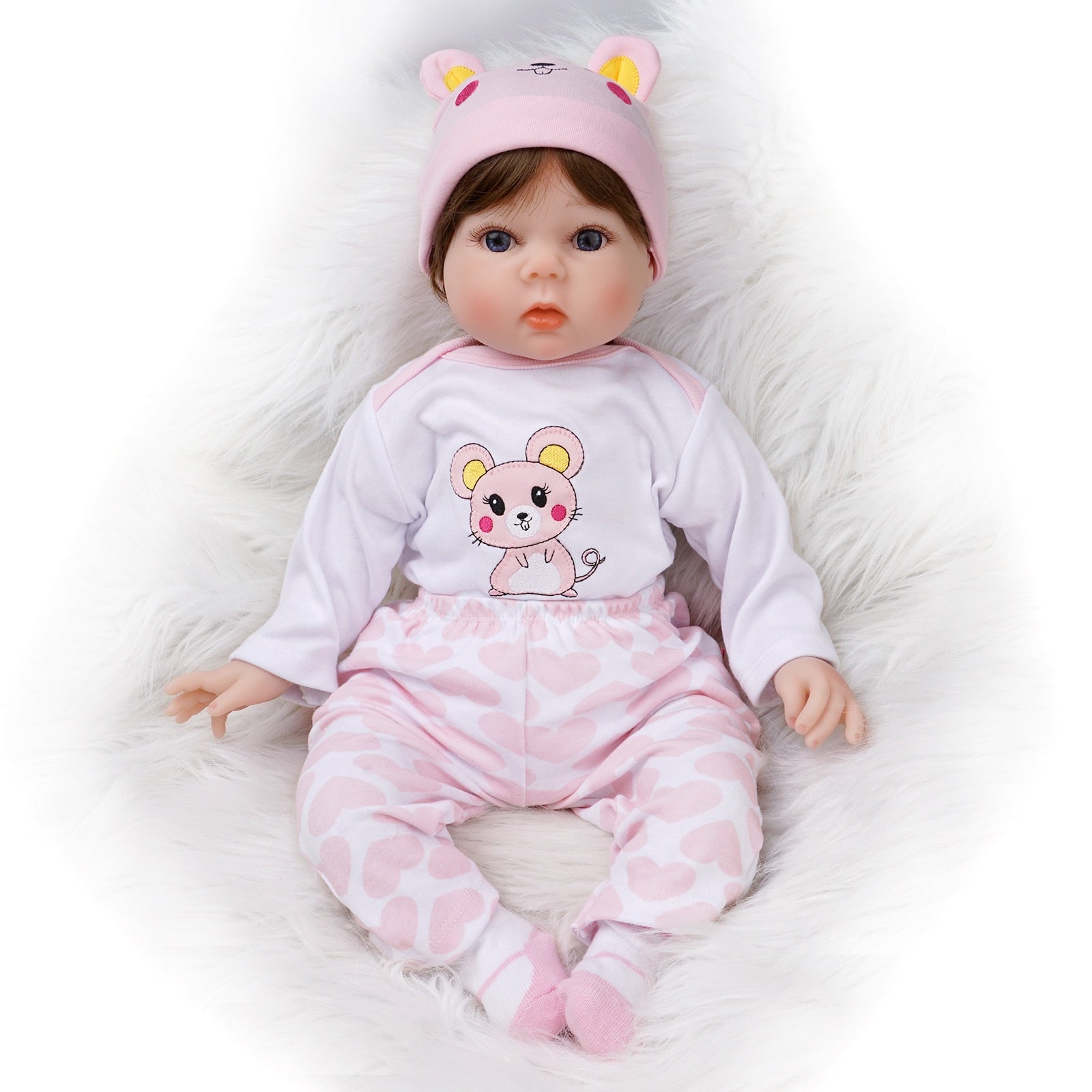 - Der Kopf, 3/4 Arme und 3/4 Beine sind aus weichen Silikon-Vinyl-Materialien. Die Schulter und der Körper sind StoffKörper mit interner Füllung PP Baumwolle. Sie werden sich sehr gut fühlen, wenn Sie die Babypuppe berühren. Die Gliedma?en sind beweglich, die Puppe kann leicht sitzen und sich hinlegen, kann aber NICHT stehen und sprechen.