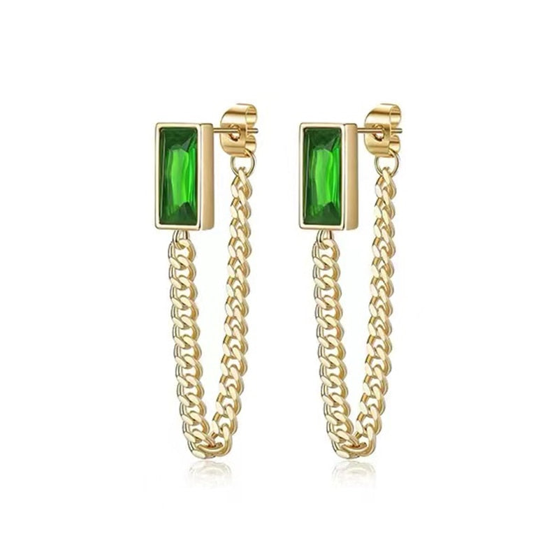 Klassische und geometrische Edelstahlkette, grüne Ohrringe